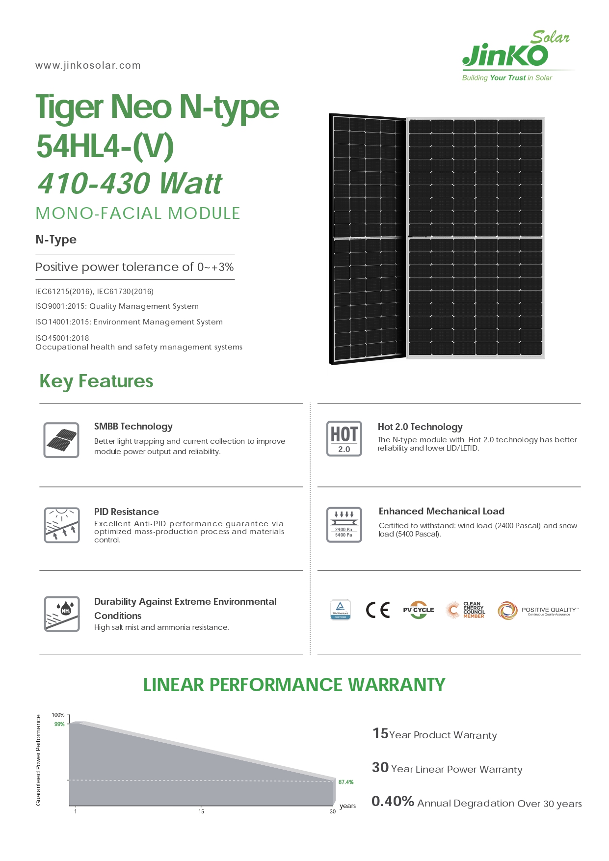 - Model: Jinko Tiger Neo N-Typ 54HL4-(V) 410-430 Watt